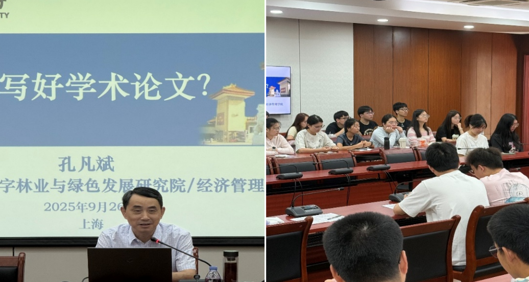 9月26日上午,南京林业大学孔凡斌教授应邀莅临我院开展学术交流,在临港校区学术楼301会议室作了题为“研究生如何写好学术论文”的专题讲座。讲座由院学术委员会主任邹秀清教授主持,管理科学与工程、工业工程与管理专业70余名研究生参加。